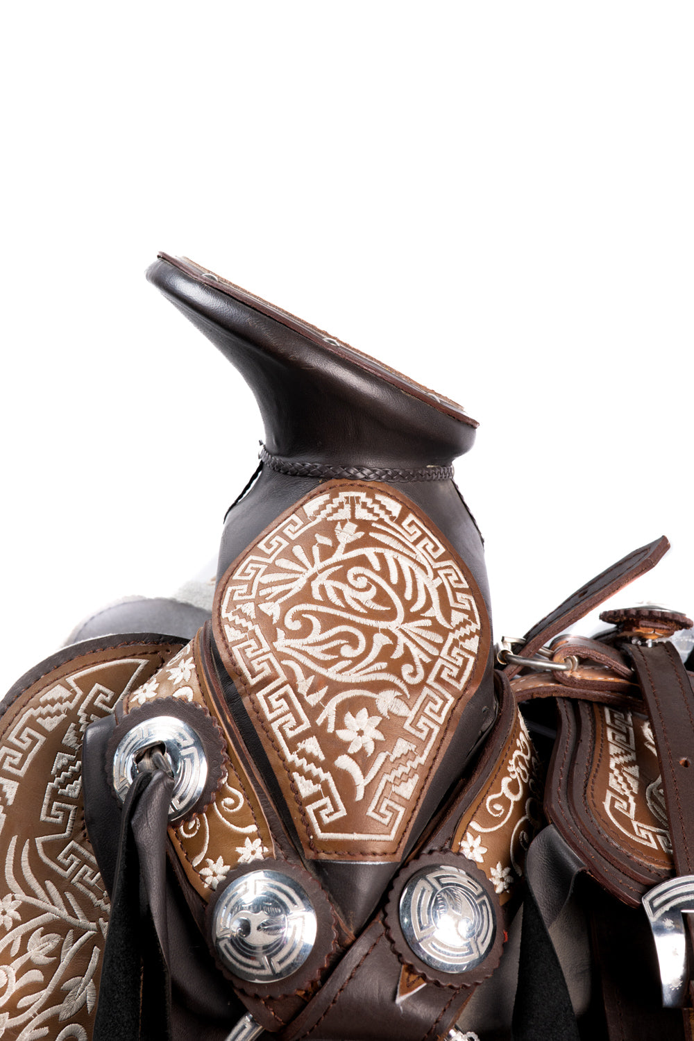 MONTURA BORDADA EN HILO DE ALGODÓN VAQUETA 4 CHOCOLATE C/ HERRAJES CUADRADA